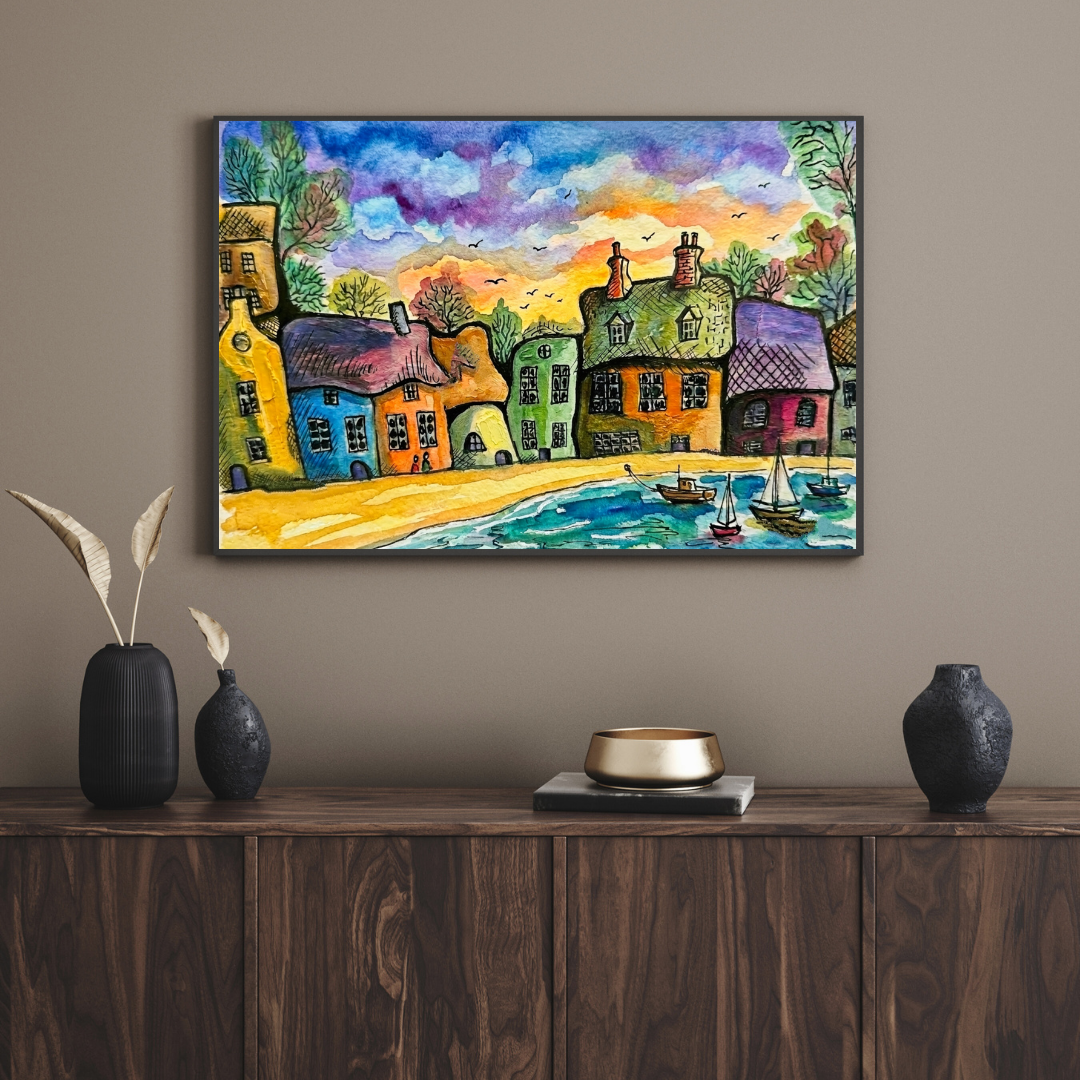 Abstract Coastal Harbour Wall Art -Minimalist Nautical Landscape Print