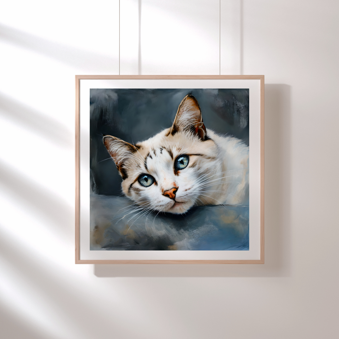 White and Light Brown Cat Wall Art with Blue Eyes – Relaxing Cat Print - Cute Pet Home Decor